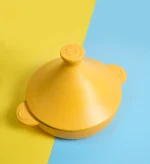 The conical lid promotes steam circulation using very little water. While the food is cooking, the steam rises into the cone, condenses and falls back onto the base of the tagine. Thus achieving a dish full of flavour, tender, juicy and very healthy.