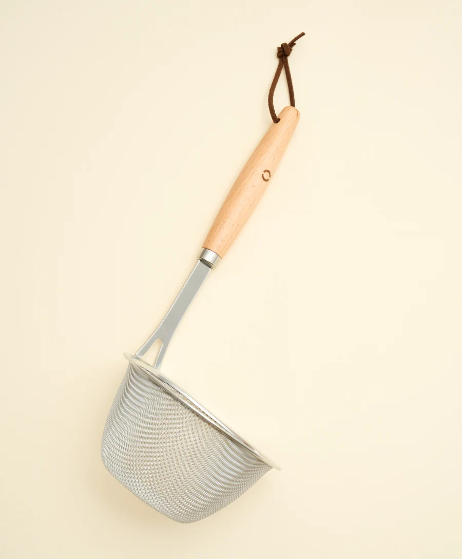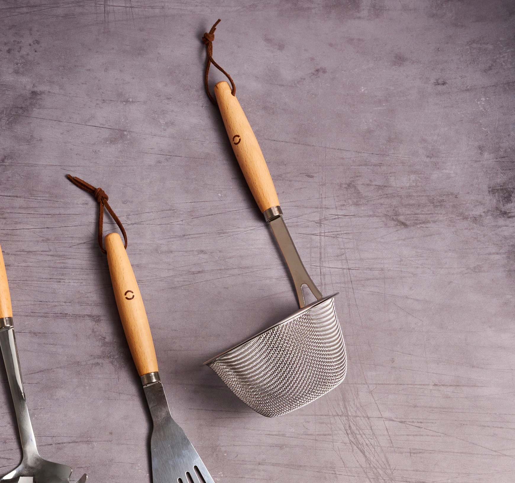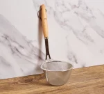 Strainer basket for cooking that combines the resistance and advantages of stainless steel in the kitchen with the touch of modern and sustainable design that the wooden handle gives it. In addition, the rounded handle provides a greater and more comfortable grip.