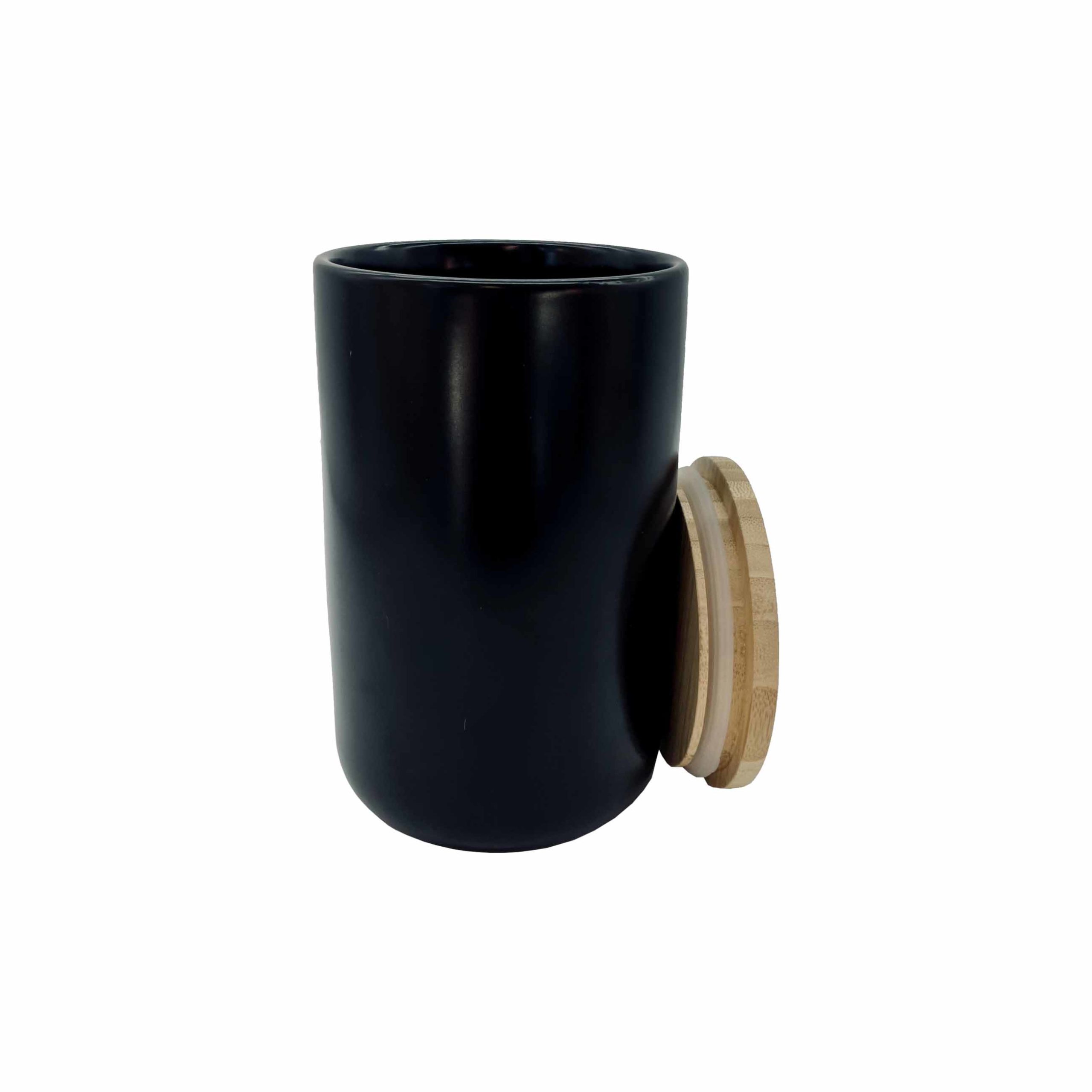 Show off order and design in your kitchen with this large storage black ceramic pot.