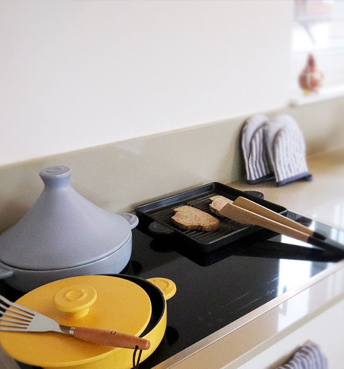 La cerámica de gres de nuestros utensilios está fabricada en Italia, es 100% natural y está hecha a base de materias primas de altísima calidad.