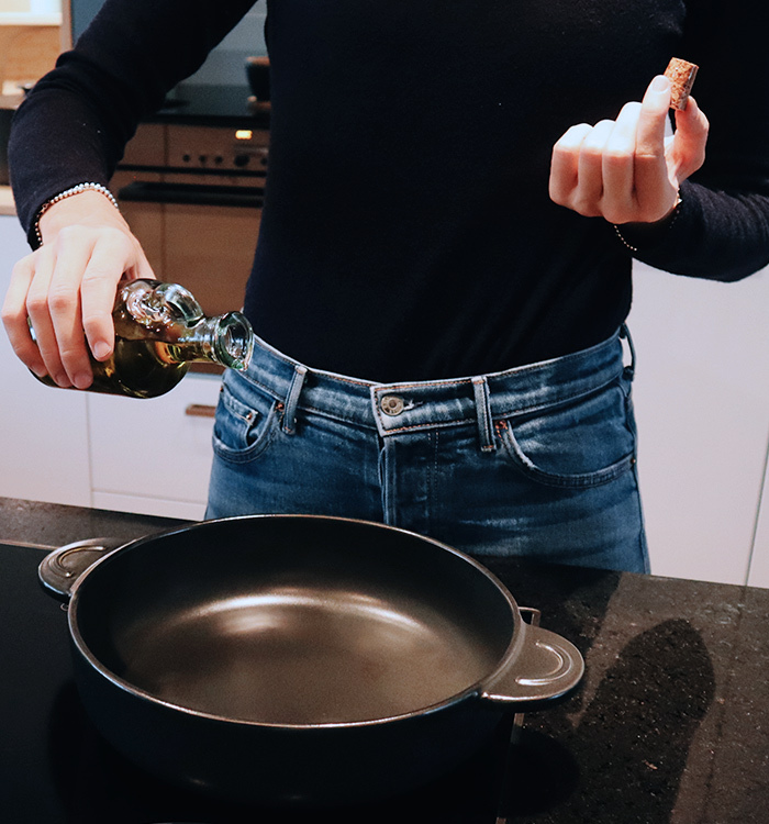 Para evitar que la comida se enganche, añade el aceite una vez hayas precalentado tu olla, en lugar de añadir directamente sobre frío.