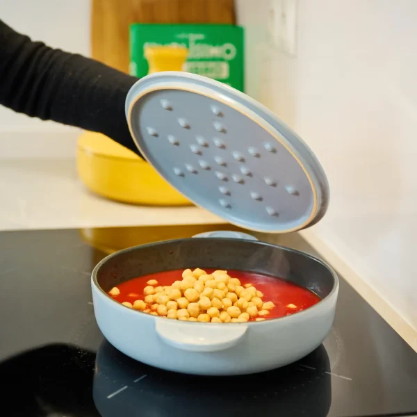 Si después de lavar todavía quedaran restos de cocina difíciles de limpiar, añade agua y ponla a calentar y déjala un rato para ablandecer estos restos. Si aún y así se resiste, puedes añadir un poco de bicarbonato y frotar con la esponja. Ten en cuenta que la cerámica es ligeramente porosa, por lo que recomendamos que nunca dejes la olla en remojo con jabón.