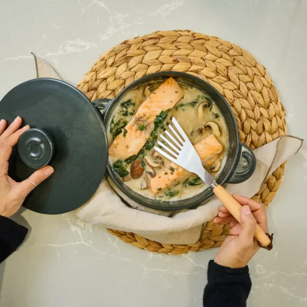 Empieza cocinado en tu vitrocerámica, inducción o gas. Termina la cocción con un toque de horno y sírvelo en la mesa. Guarda los restos en la nevera o congelador, y una vez listo, directo al lavavajillas o pila. Todo esto sin la necesidad de cambiar de recipiente en ningún momento.