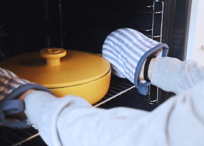 La cerámica de Gres es más resistente al choque térmico que otros tipos de cerámica, sin embargo, hay que tenerlo presente y evitar los cambios bruscos de temperatura para prevenir grietas o roturas repentinas. Es importante, por ejemplo, no añadir agua fría o comida congelada directamente en el recipiente caliente o guardar el recipiente directamente en la nevera después de haber estado en el horno a altas temperaturas. Basta con esperar unos minutos a que el utensilio se enfríe.