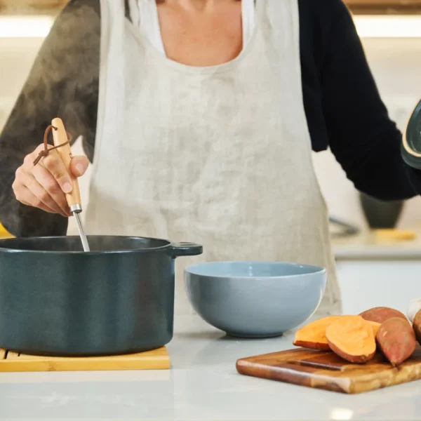 Para unos resultados óptimos, empieza calentando los utensilios KUOKO a fuego mínimo durante 1 minuto antes de empezar a usarlo. La cerámica de gres retendrá el calor por más tiempo que otros materiales, incluso después de haber apagado el fuego.
