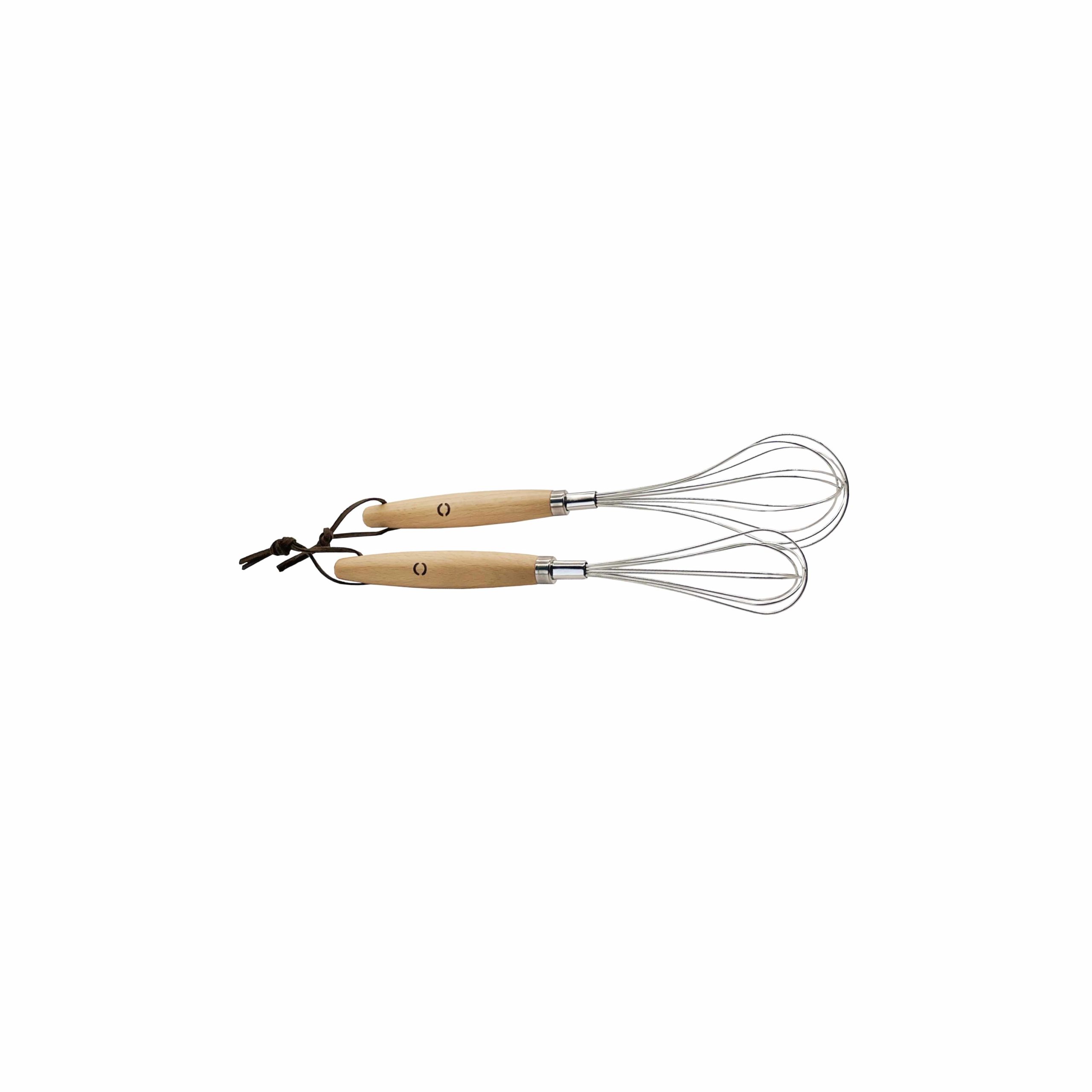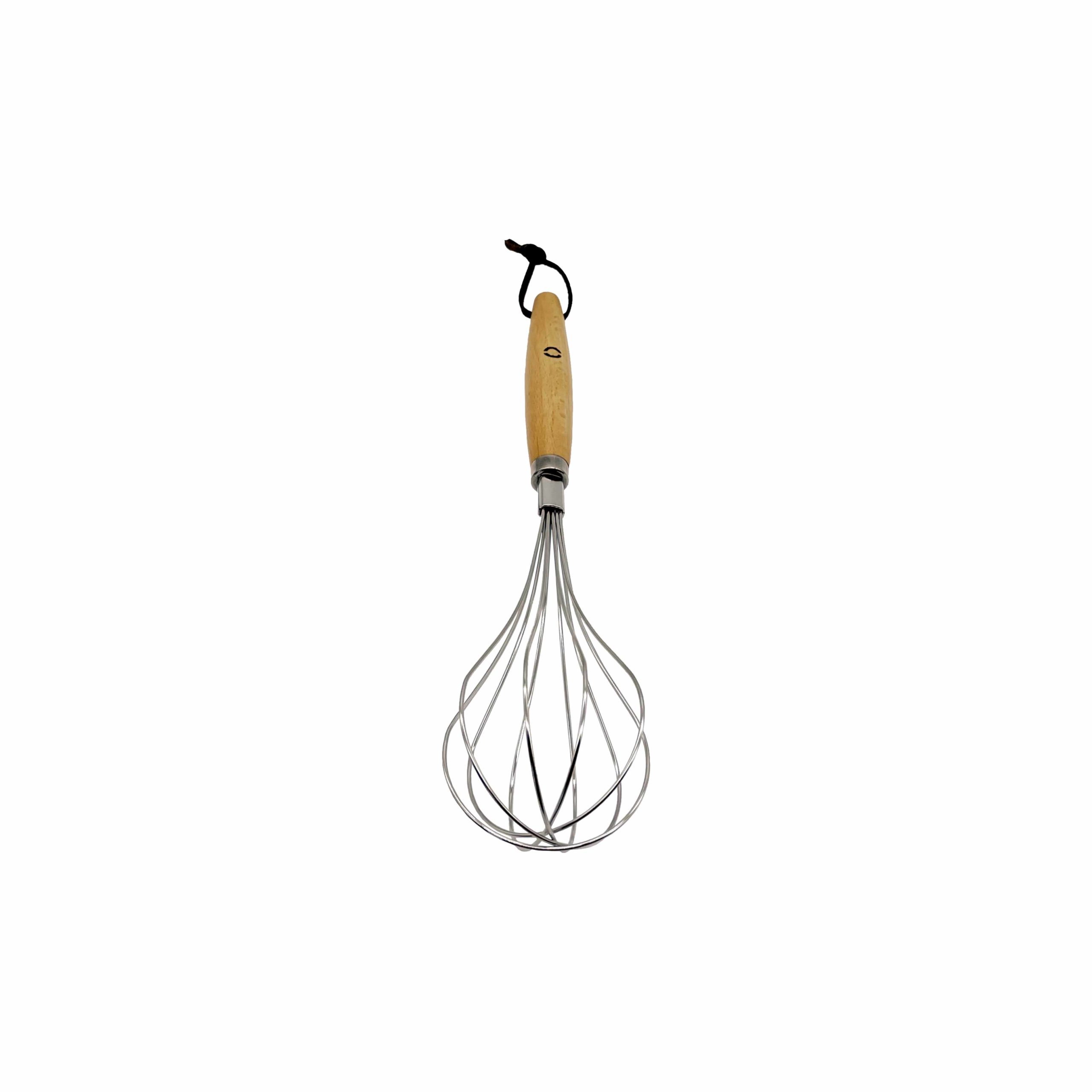 Batidora de globo que combina la resistencia y ventajas del acero inoxidable en la cocina con el toque de diseño moderno que le da el mango de madera. Además el mango en forma redondeado proporciona un mayor y más cómodo agarre.