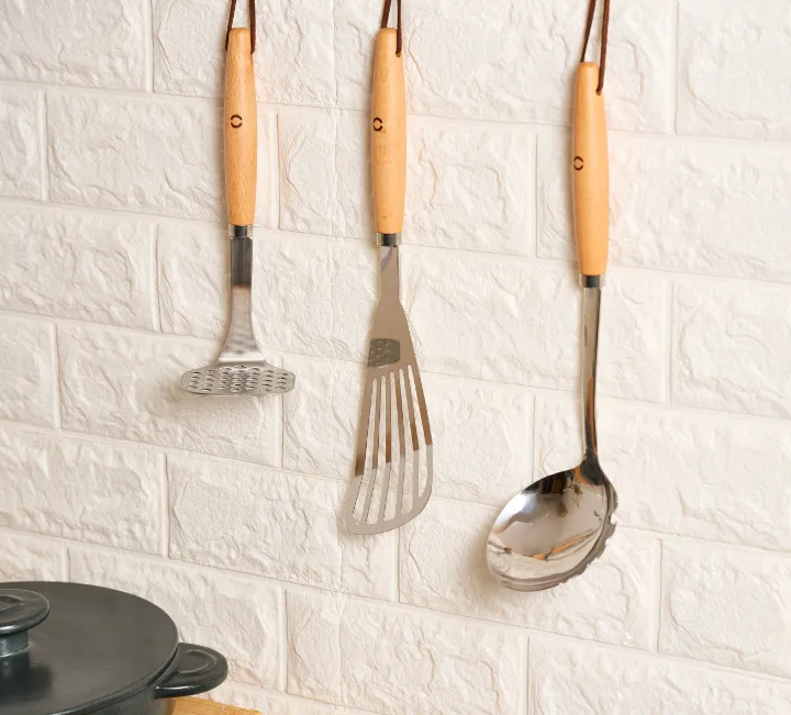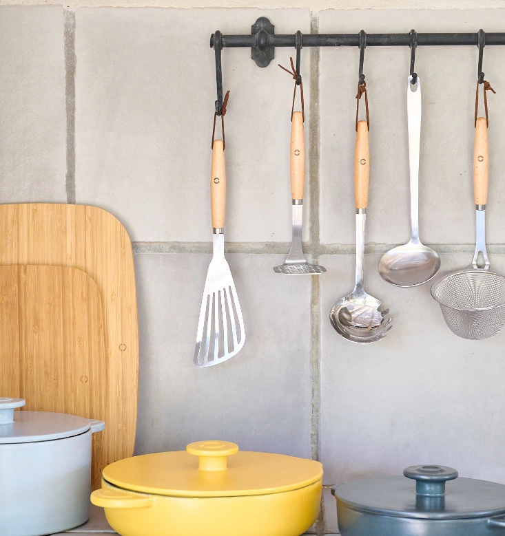 Combina a la perfección la resistencia del acero inoxidable junto con el diseño del mango de madera de haya, redondeado para un agarre más cómodo y a una distancia perfecta para tener control sobre el utensilio sin estar demasiado cerca del calor de la cocción.