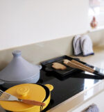 La cerámica de gres se cuece a temperaturas altísimas, es por eso que es una cerámica mucho más dura, resistente, y duradera a la convencional. Lo que la convierte en un material ideal para usar en la cocina.