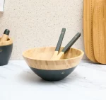 Sirve tus ensaladas y platos con este set de cuchara y tenedor de madera de bambú. Muy ligeros de color antracita y diseño minimalista. ¡Le darán un toque especial a tu mesa!